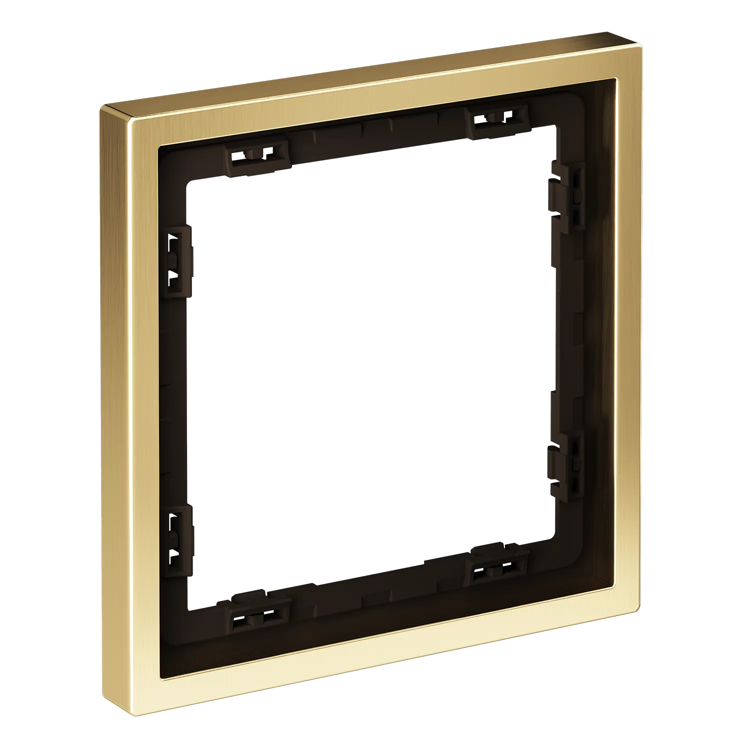 Рамка изготовлена методом точного литья цинкового сплава под давлением — это гарантирует идеальную геометрию и отсутствие внутренних дефектов. Сверху нанесено многослойное гальваническое покрытие цвета «латунь»: