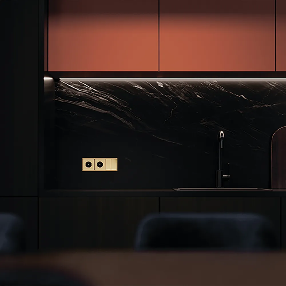 Дизайнерская электрофурнитура премиум-класса превращает управление светом в удовольствие, а интерьер — в пространство, которое дарит ощущение тепла и уюта.