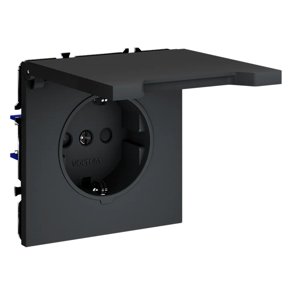 Розетка встраиваемая VOLTUM S70 с заземлением, защитными шторками и крышкой 16А, (графит)