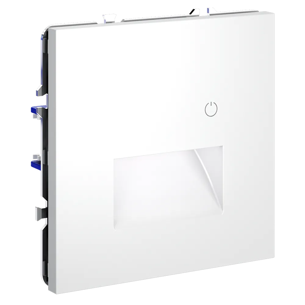 Подсветка устанавливается в стандартный подрозетник и совместима со всеми рамками серии S70 — пластиковыми и стеклянными, что позволяет интегрировать её в любую композицию на стене: рядом с выключателем, розеткой или терморегулятором.