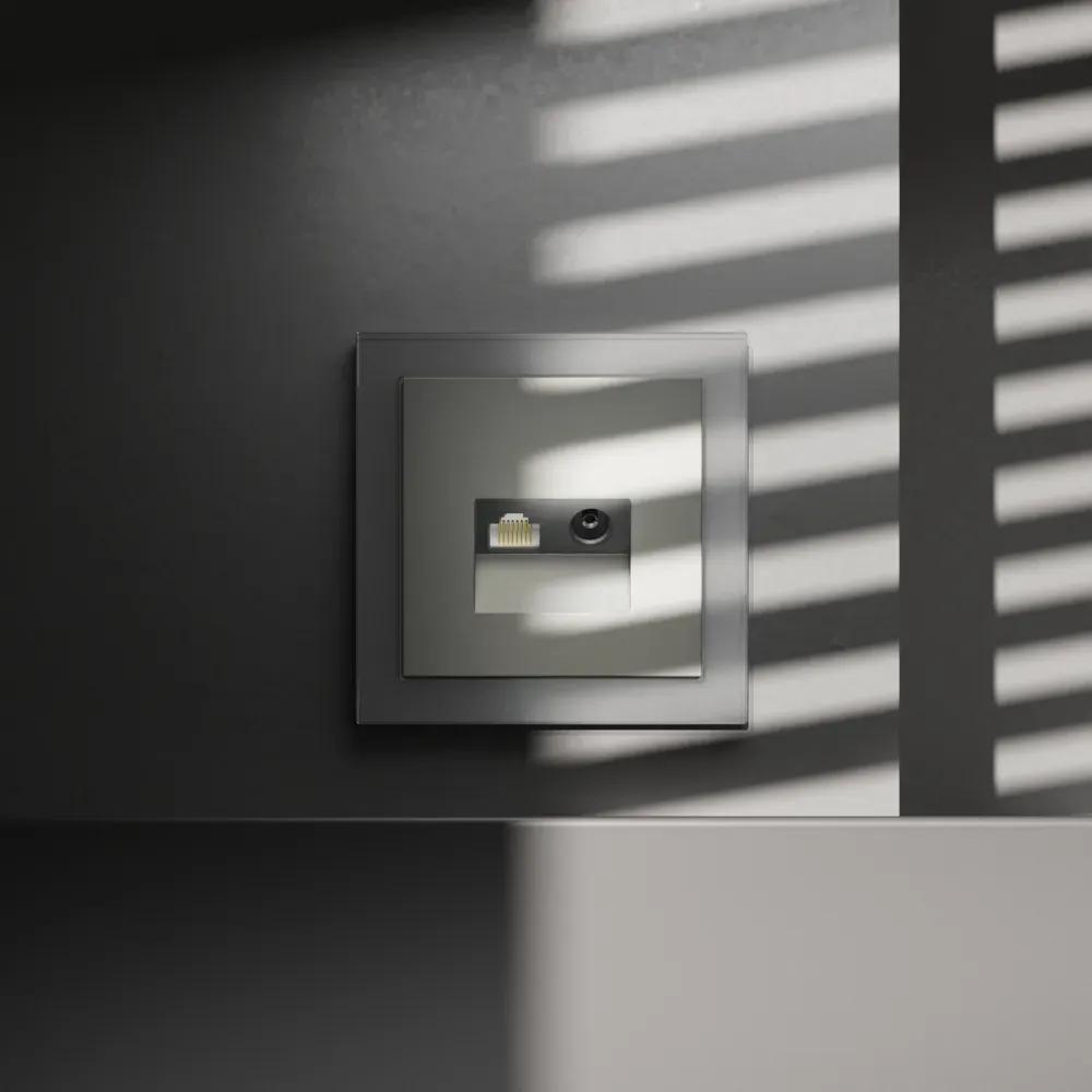 Забудьте о спутанных проводах за телевизором. Комбинированная розетка VOLTUM S70 TV+RJ45 объединяет антенну и гигабитный интернет в одной элегантной точке подключения. Чистый сигнал. Чистая стена. Полный комфорт.