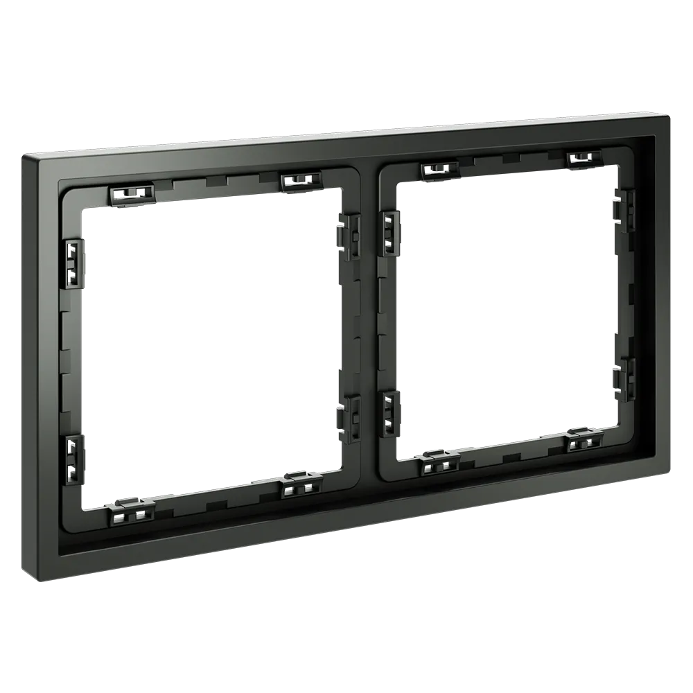 Обеспечивает быстрое и легкое соединение механизма с рамкой. Восемь фиксаторов по периметру нивелируют неровности стены и надежно удерживают конструкцию.